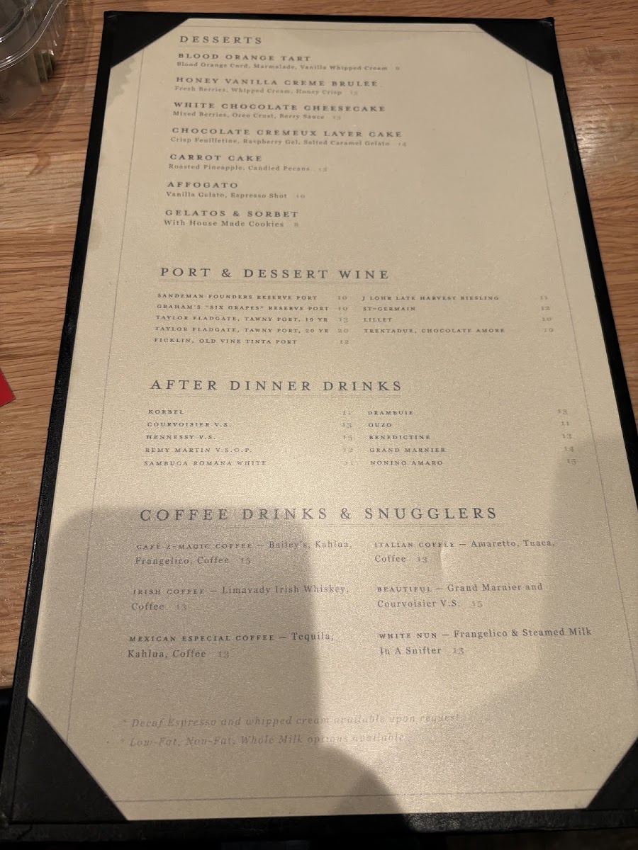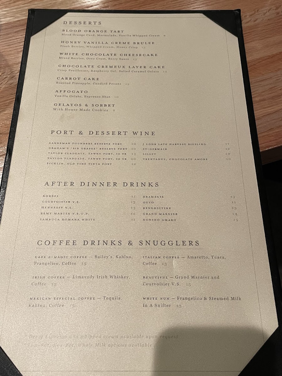 Whether indulging in a Z-Burger for a casual lunch or savoring a salmon dinner during a quiet, intimate dinner, the menu works well with the setting’s blend of relaxed charm and fine dining touches. Salads and fresh sides add balance, while desserts like vanilla ice cream offer a simple, familiar finish.