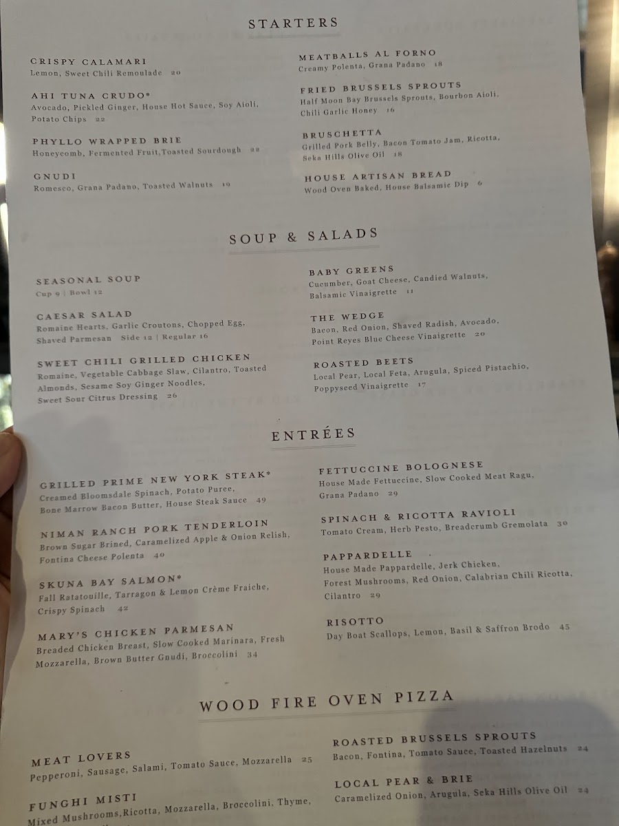 Start with small plates like bruschetta or crispy fried calamari, ideal for sharing over lively conversation. The housemade Bella Bru sourdough bread complements these starters and sets a warm, inviting tone. Entrées range from hearty options such as the mustard chicken and meatloaf to more elegant choices like filet mignon, seafood pasta, or the seasonal pumpkin ravioli, each prepared with a care that aligns well with the venue’s inviting yet polished atmosphere.